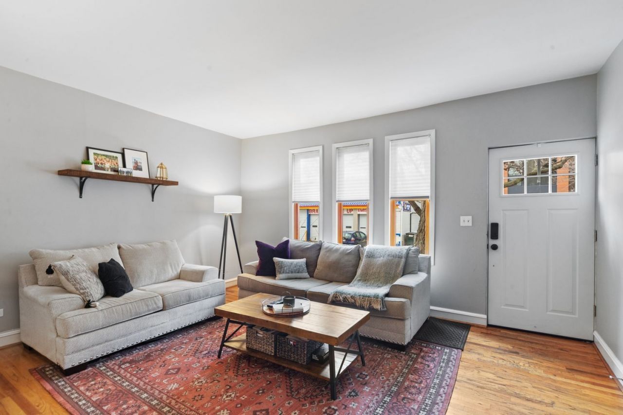 Updated first-floor duplex down in a 2-unit building in Wicker Park. Features include a west-facing living room with hardwood floors throughout the first level, an updated modern white kitchen (2018) with stainless steel Samsung appliances, quartz countertops, and a large island adjacent to a dining/breakfast noon, enclosed porch/mudroom, primarfy bedroom with spa shower (2018), and a second bedroom/office. Lower level offers a spacious family/media room with workout/office space and ample storage. Full-size laundry room on the main level. Shared yard with patio and green space. One garage parking spot included in the Monthly Rent. Pet friendly. Close to Division Street, Blue Line, and Kennedy Expressway.