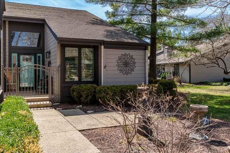 Fabulous 3-bedroom, 2-bath condo in desirable Shadow Woods! The beautifully updated eat-in kitchen features granite countertops, stainless steel appliances, and ceramic tile flooring. The spacious great room offers a soaring vaulted ceiling, cozy gas fireplace, and opens seamlessly to the elegant dining area perfect for entertaining. The primary suite includes a walk-in closet and private bath with double sinks, a walk-in shower, and a relaxing tub. Gleaming hardwood floors and ceramic tile run throughout the main level. The finished lower level adds incredible versatility with a large family room, two bonus rooms (one with an egress window), and additional storage space. Main floor laundry with extra cabinets adds more convenience. Enjoy outdoor living with both a private front patio and a covered composite rear deck with Hot Tub overlooking the beautifully landscaped greenspace with mature trees and flowers, offering extended living space and privacy. Additional features include a tiled garage floor. Hot tub (back porch) and sauna in the lower level will stay. Planter boxes in back stay. Furnace 2024. Roof/skylight 2022. Windows/ kit slider 2022. Skylights in back porch have auto feature. Dog wash in lower level does not stay. Window treatments in primary bedroom do not stay. To be sold "as is." Seller prefers a 2-hour show notice and no evening showings.