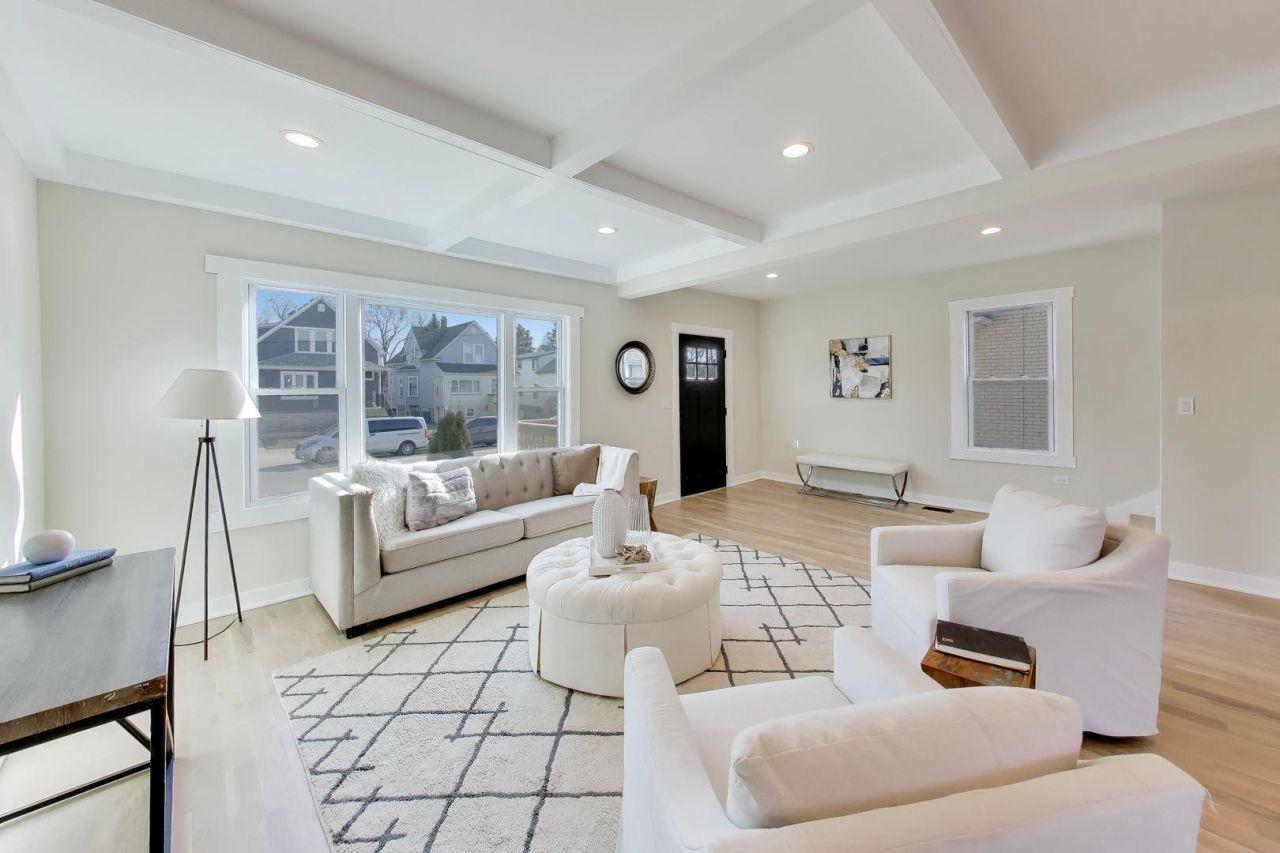Introducing this exceptional single-family residence set on an expansive 9,000+ square-foot lot, a truly rare offering on Chicago's north side. Expertly de-converted from a two-unit into a grand single-family home, this property delivers impressive scale, thoughtful design, and modern infrastructure throughout. The plumbing and electrical systems have been completely updated, and dual-zoned HVAC has been upgraded to provide optimal year-round comfort and reliability. Elevated finishes are found at every turn. White oak hardwood floors flow effortlessly from the living room through the dining area and into a brand-new designer kitchen that anchors the main living space, offering another bedroom, half-bath, and eat-in kitchen option or additional family space-ideal for both everyday living and elegant entertaining. The white oak flooring continues upstairs into three generously sized bedrooms with ample storage, including a walk-in dressing room in the primary suite, providing remarkable flexibility for today's lifestyles. The basement features a private exterior entrance, making it perfectly suited for in-law living, extended family accommodations, or a private guest suite, complete with one bedroom and a full bathroom, while remaining seamlessly connected to the home. Set on an oversized lot with abundant outdoor space, this residence combines rare land, comprehensive updates, and refined craftsmanship-creating a truly distinguished opportunity for sophisticated city living. Agent owned.