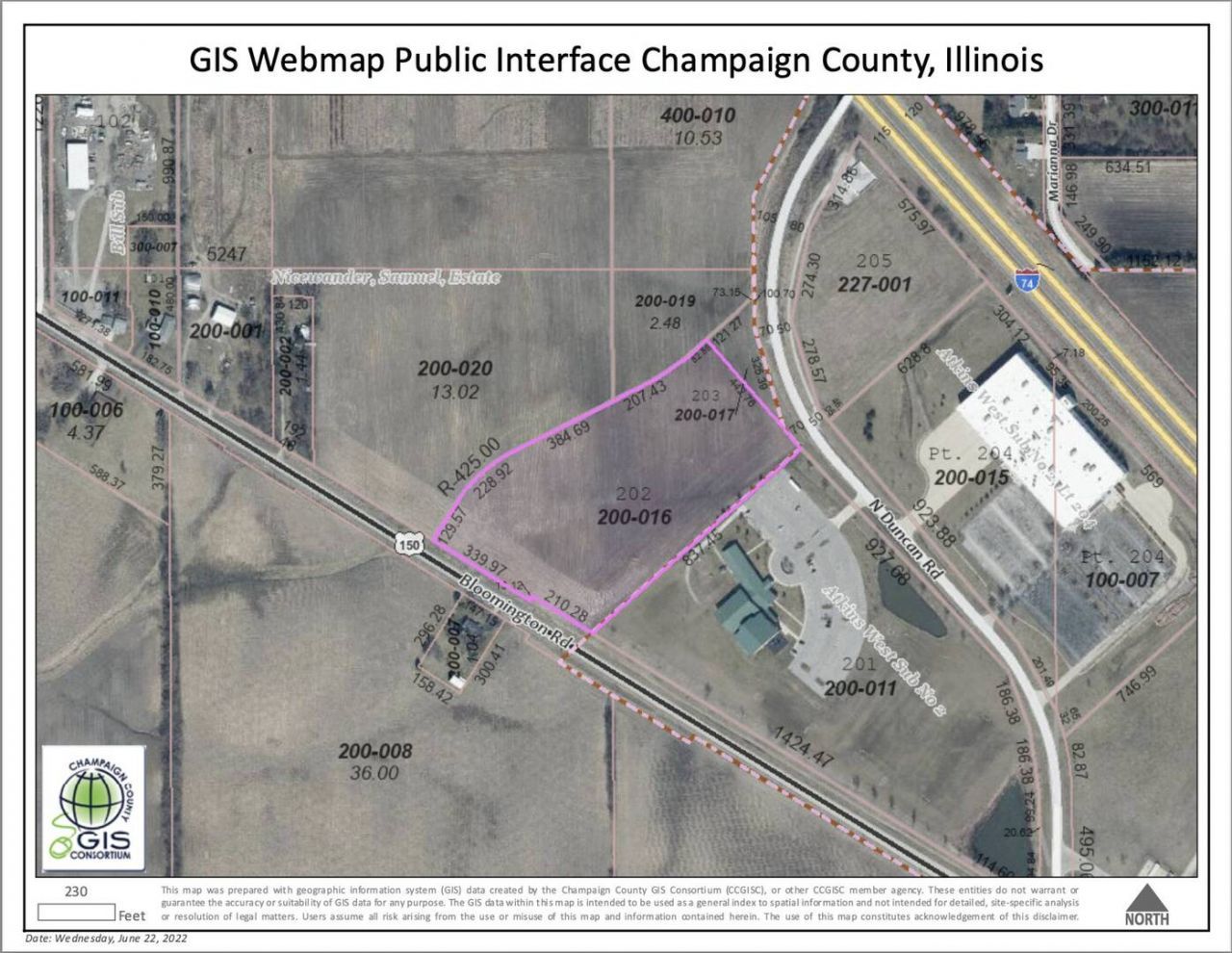 10.76 acres of development land along Bloomington Road, just west of intersection with Duncan Road.. Property is part of the larger Atkins West Subdivision which is home to multiple office/industrial users. Upon purchase, the property would be annexed to the City of Champaign and zoning would be changes from Agricultural to Commercial/Office. Property is located west of the Interstate 57/74 interchange with quick access via Duncan Road, Mattis Avenue and Olympian Drive.